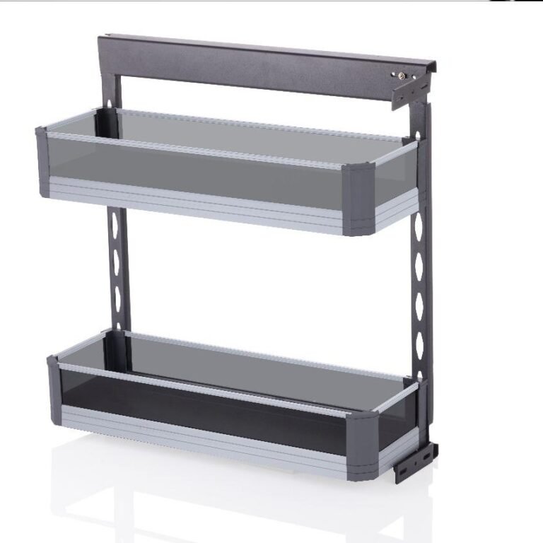 Its slender silhouette, combined with transparent glass detailing and a modern metallic frame, gives the Elan Bottle Pull Out an elegant, contemporary appearance. The minimalist design enhances narrow storage spaces while complementing upscale kitchen interiors.
