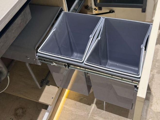 The Soft Close Double Drawer Wastebin system includes two durable bins housed within a strong, smooth-glide frame. Premium soft-close hardware ensures quiet, controlled movement, enhancing comfort and reducing impact noise. The twin-bin arrangement supports efficient waste segregation for daily use.