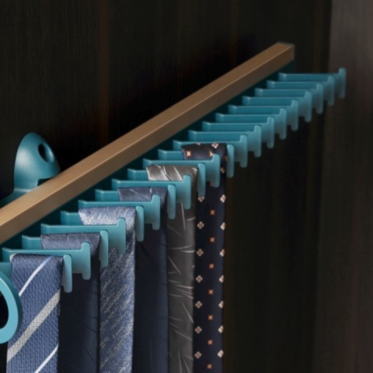Sleek and minimal, the Tie Rack adds a polished finishing element to wardrobe interiors. Its refined accents enrich the storage environment with a touch of elegance and professionalism.